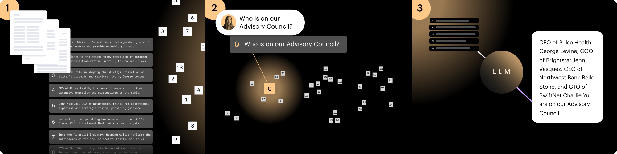Writer’s Knowledge Graph is a graph-based retrieval-augmented generation (RAG) system that stores data in an easily updatable structure while preserving its semantic relationships. Central to this approach is a specialized LLM that processes information at scale, linking data points through contextual connections rather than merely embedding them into vectors. This leads to more accurate retrieval, evidenced by the system’s 86% accuracy on RobustQA, outperforming seven well-known vector-based RAG methods.