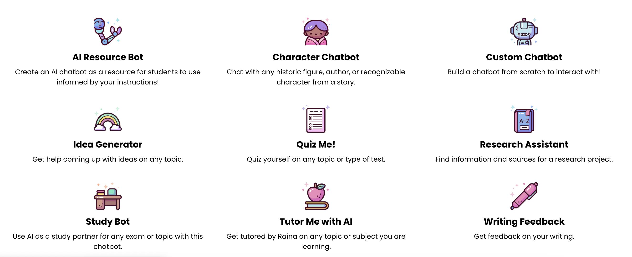 Other companies have expanded from broader education technology into AI. MagicSchool AI started by providing a set of AI tools for teachers that generate lesson plans, rubrics, and other teacher workflows. Launched in 2023, it reports more than 5 million teacher accounts across roughly 12K schools in 160 countries, covering nearly all US districts. The company then expanded in 2025 into AI tutoring with MagicSchool for Students. From instructor-informed resource bots to character chatbots of historic figures, research assistants for projects, and study partner bots, MagicSchool is attempting to layer AI into each aspect of the learning journey.
