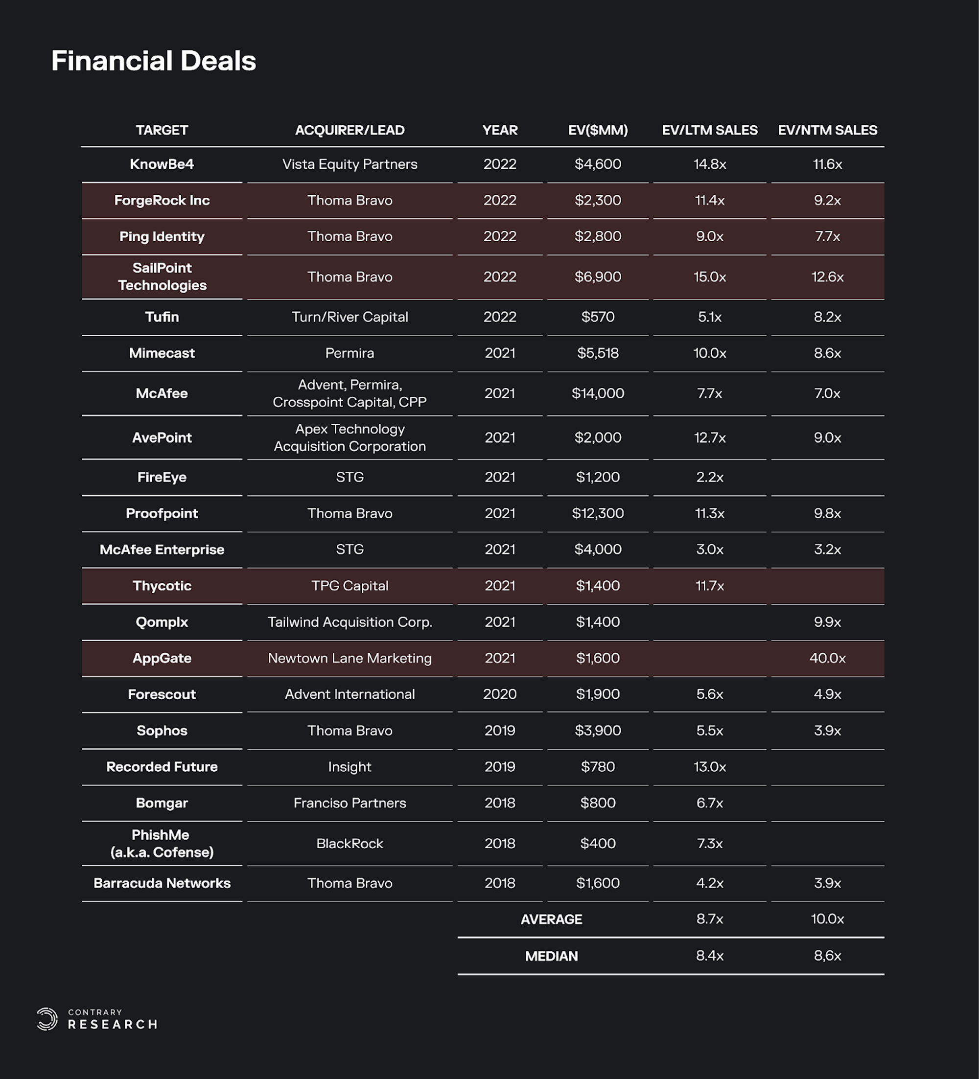 Source: JP Morgan, Initiating on Security Software (January 2023); Contrary Research; Notable identity or access related companies acquired by PE in recent years
