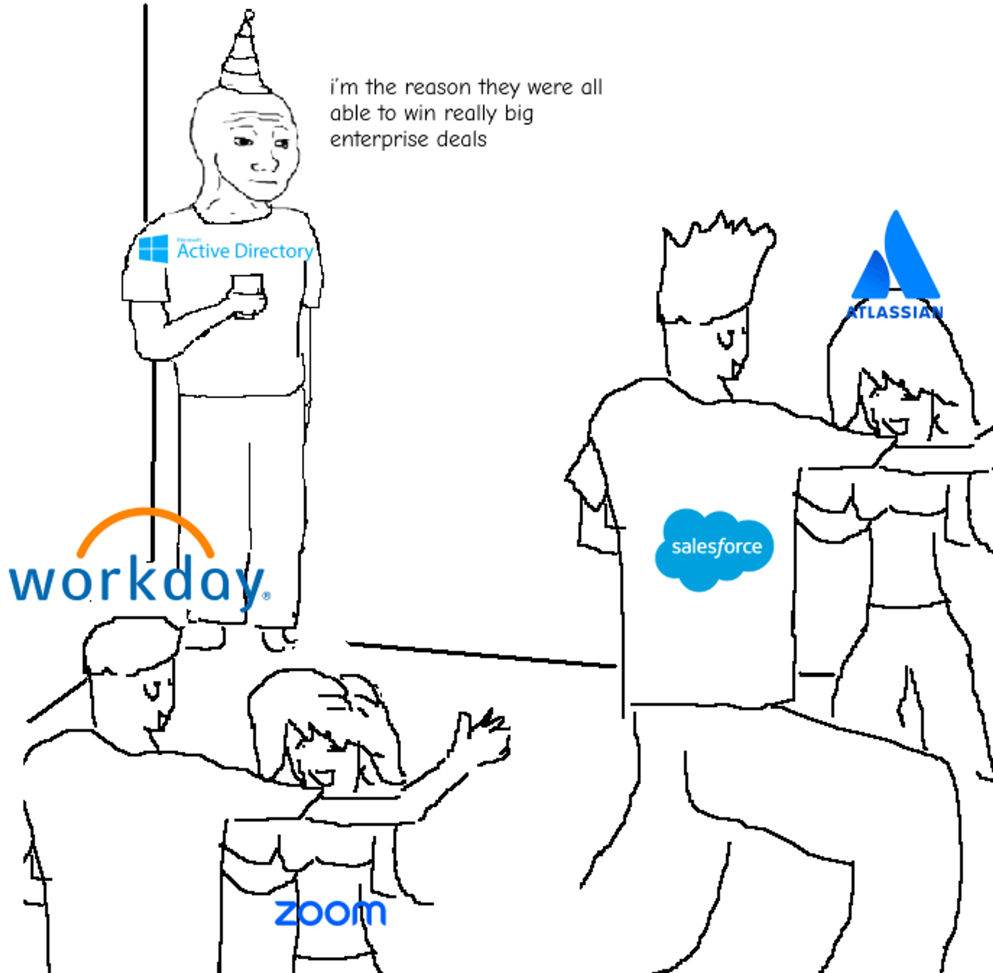 Remember, in the early 2000s, applications were just getting started. Organizations were building applications both for internal users and external customers, and employees were getting more and more annoyed at having to log-in and re-authenticate with each one. At the same time, companies like Atlassian and Salesforce emerged with per-seat pricing, making IT teams really want to understand who had access to the expensive software they were buying. SSO was technically not a new idea, but Microsoft brought it to the masses when it launched Active Directory Federated Services (ADFS) in 2005 and bundled it with Windows Server 2003 R2.