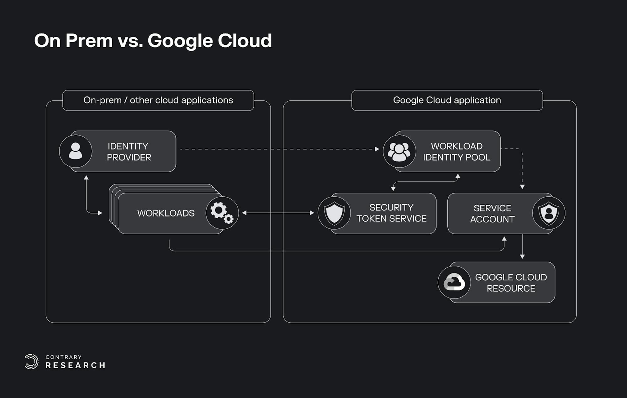 Once a company knows who (which workload) wants access to what (the data requested), they also may want to control the circumstances surrounding their access. It’s fine for a microservice to make a write request to a bank API, but not if that microservice has been compromised. The hyperscalers (GCP, Azure, AWS) have robust workload identity products that handle attestation and authorization on a conditional basis for apps within their clouds and outside, with workload identity federation. Think of it like SSO for workloads – the cloud provider will authenticate the workload with whichever identity provider is already being used to verify its integrity.