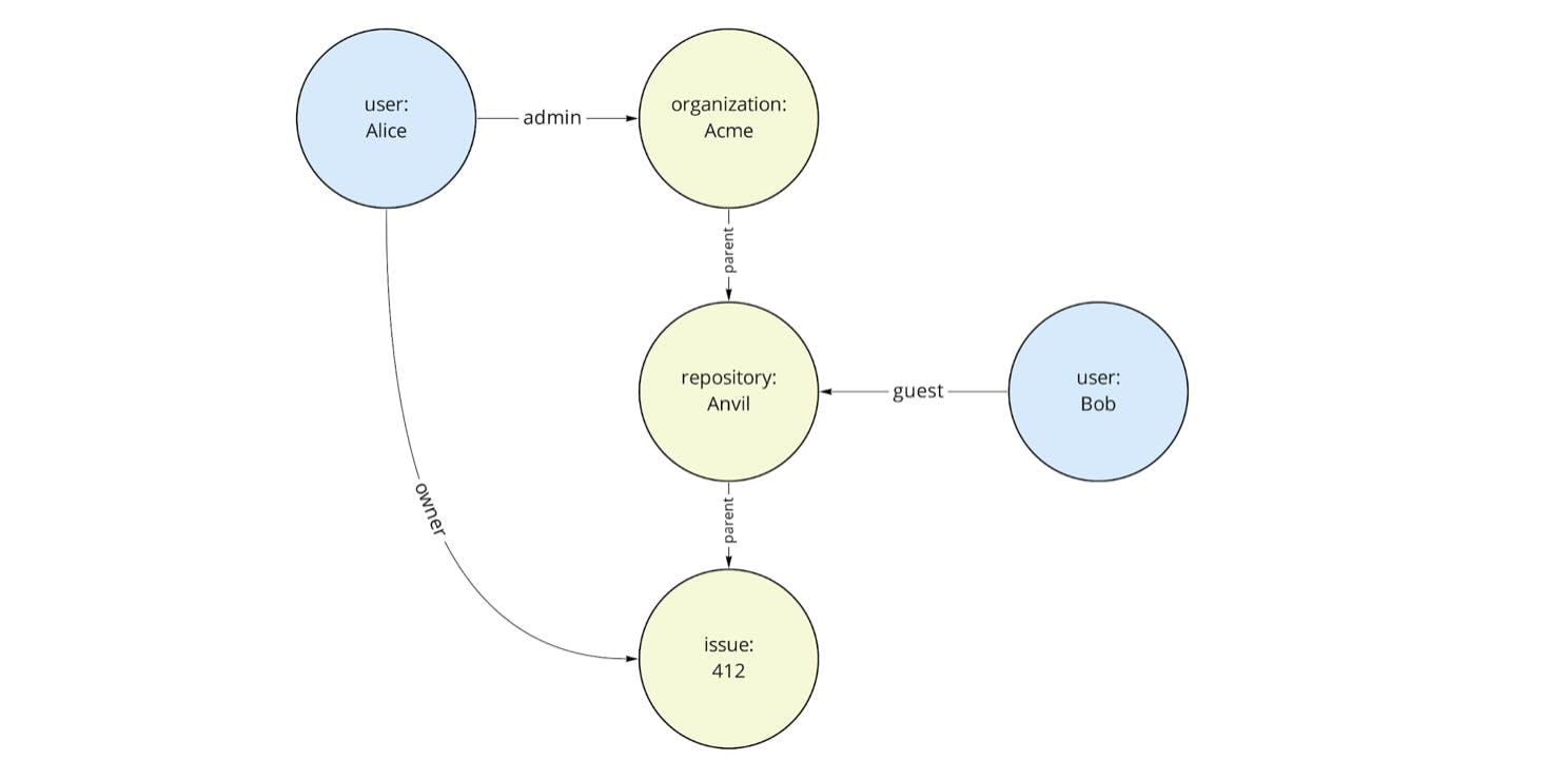 “Suppose we want to evaluate: is Alice allowed to edit the Anvil repository? We first find all relationships Alice has with the repository. We can now do this by walking over the graph, and finding all paths.