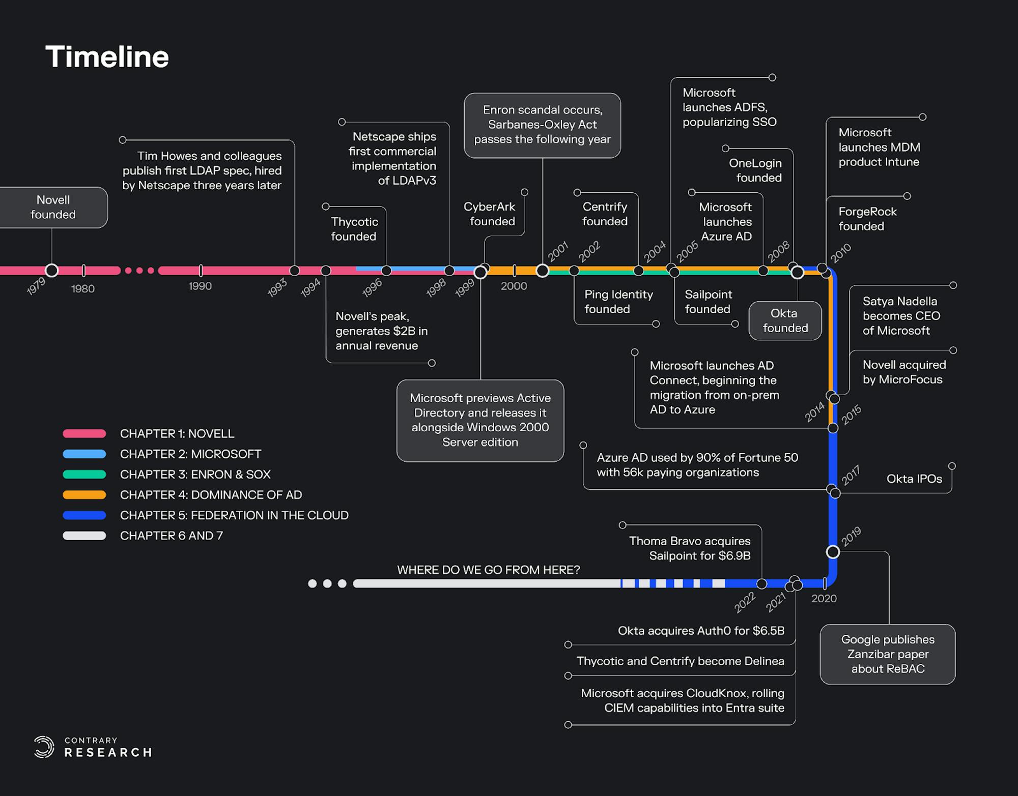 Novell, founded in 1979, became the early pioneer in managing identity and access with a file-sharing system that let admins and users control access at the file level instead of at the entire disk volume level. This meaningfully changed the way the industry thought about access control.