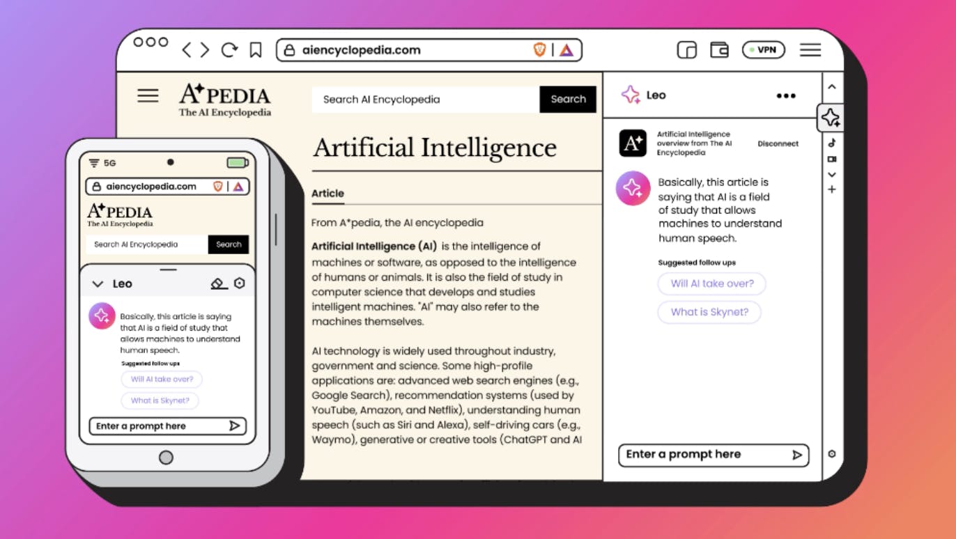 Brave is a privacy-first web browser that blocks trackers, cookies, fingerprinting, and third-party ads on all websites, and it offers a firewall and VPN subscription for paying customers. In August 2023, Brave released its browser-native AI assistant, Leo, which allows users to summarize web pages, generate new content, translate, analyze text, and more, without leaving the page.