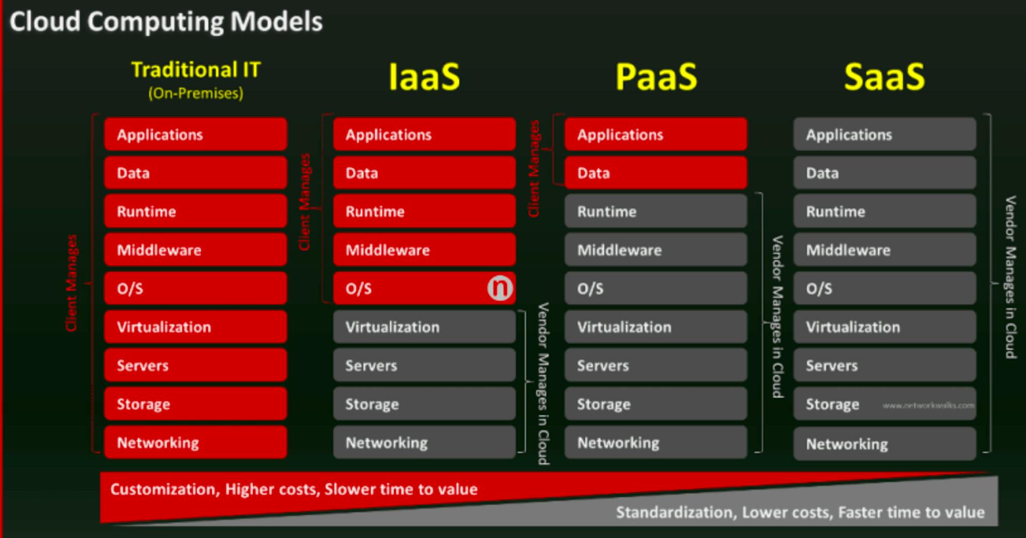 Infrastructure-as-a-Service (IaaS) involves a method for delivering infrastructure such as servers and storage through IP-based connectivity as part of an on-demand service. Clients can avoid the need to purchase hardware and operating systems, and instead procure these resources in an outsourced, on-demand model. Popular examples of IaaS services include Amazon Web Services (AWS), Microsoft Azure, and Google Cloud (GCP). Other tools like HashiCorp Terraform are used to provision infrastructure resources from cloud providers.