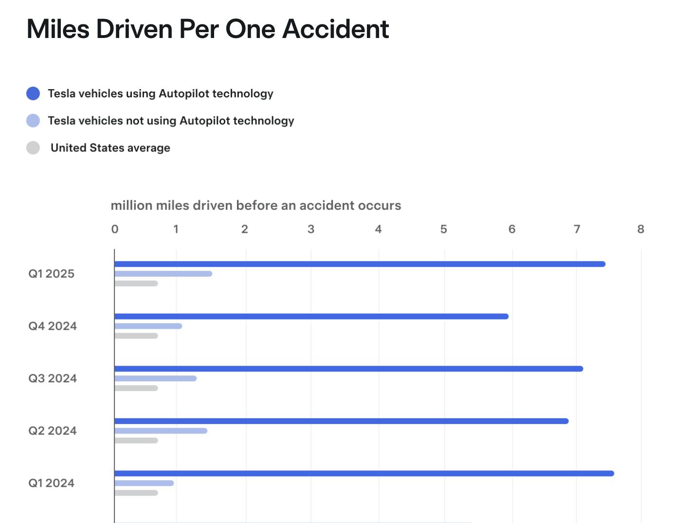 Elon has argued that all driving has risks and, on a relative basis, Tesla’s Autopilot technology is much less risky than a human driver. Tesla’s Vehicle Safety Report claims Autopilot drives over 7x more miles before an accident occurs compared to the US average.